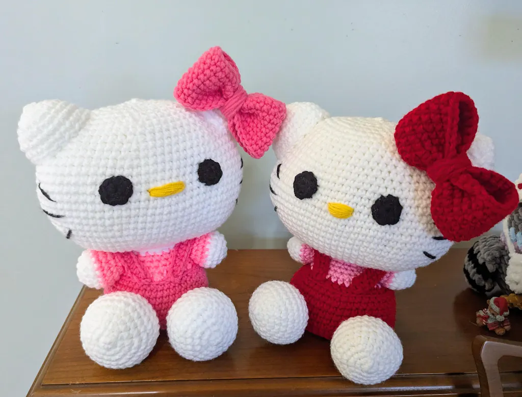 Este patrón para tejer a Hello Kitty incluye una descripción detallada junto con fotografías explicativas del proceso.